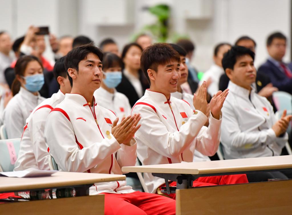 当日的大会进行了颁奖仪式,短道速滑国家集训队获得“冰上尖刀”称号,钢架雪车国家集训队获得“雪上先锋”称号,蔡雪桐、张晶、雪车国家集训队等多位运动员、教练员、工作人员以及多个运动队、保障部门获得表彰。