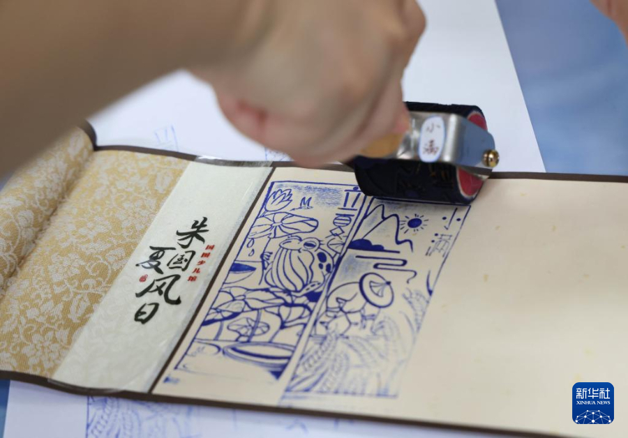 8月20日,在“朱夏国风日”传统文化沉浸式体验活动中,国家图书馆工作人员为孩子们制作国风卷轴。