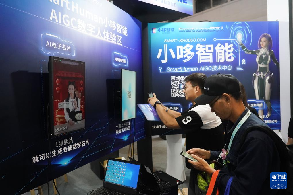 8月26日,观众在HICOOL2023全球创业者峰会展览展示区体验AI生成数字名片。