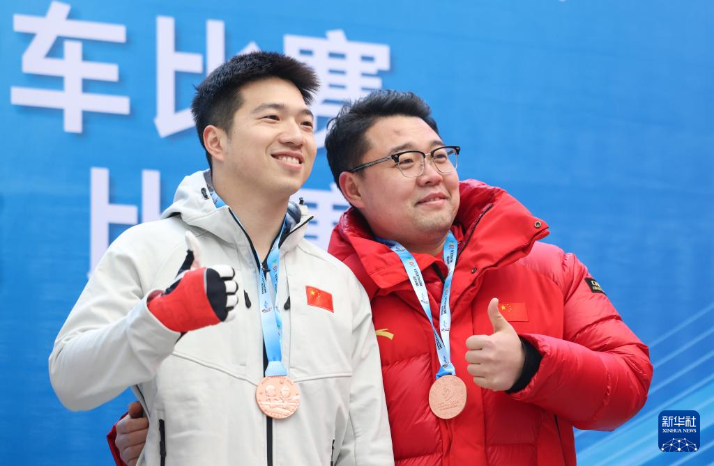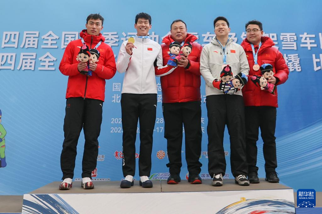 当日,第十四届全国冬季运动会男子钢架雪车颁奖仪式在国家雪车雪橇中心举行。