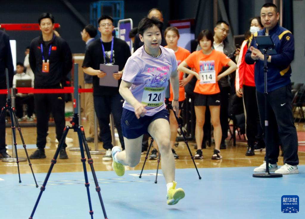 12月29日,国家乒乓球队队员孙颖莎在Y型跑项目测试中。