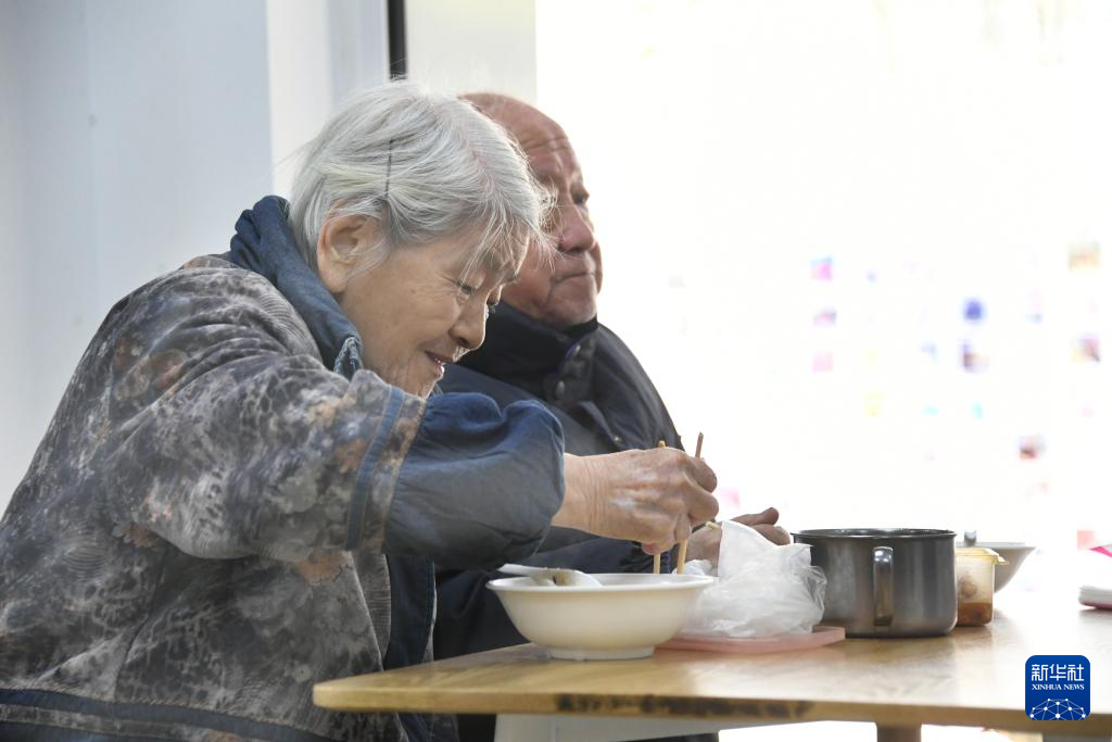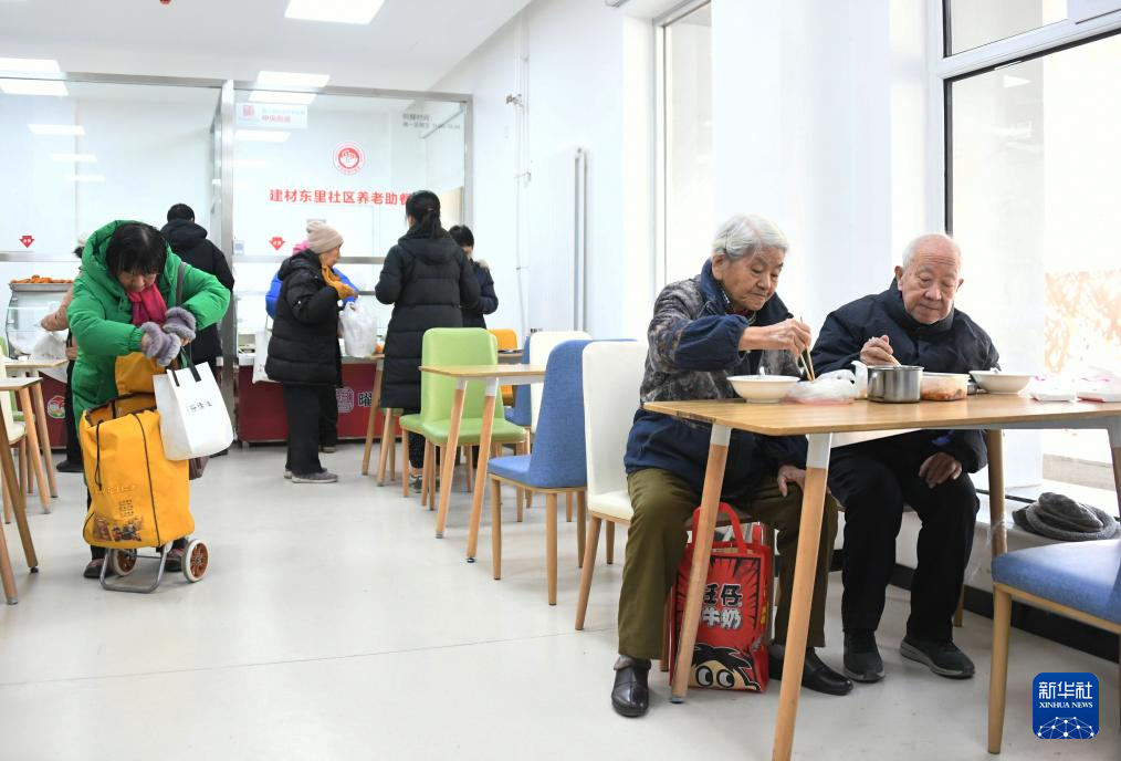 1月16日,老人在北京市海淀区西三旗街道建材东里社区养老助餐点用餐。