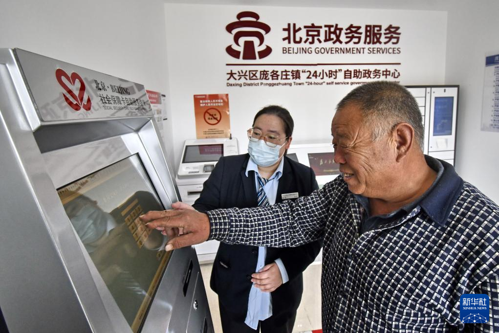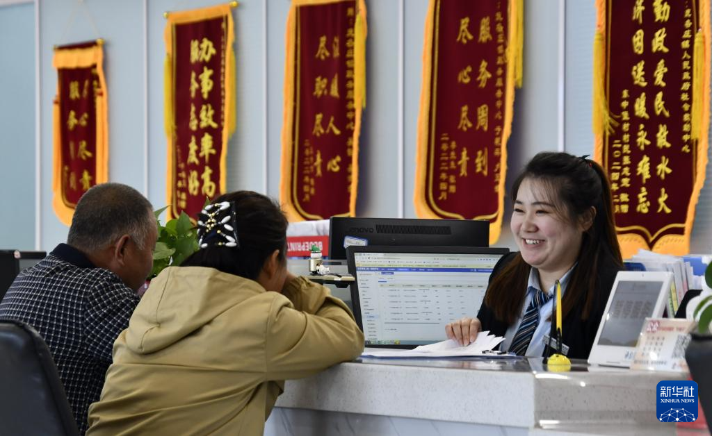 3月25日,庞各庄镇政务服务中心的工作人员帮助村民办理社保事宜。