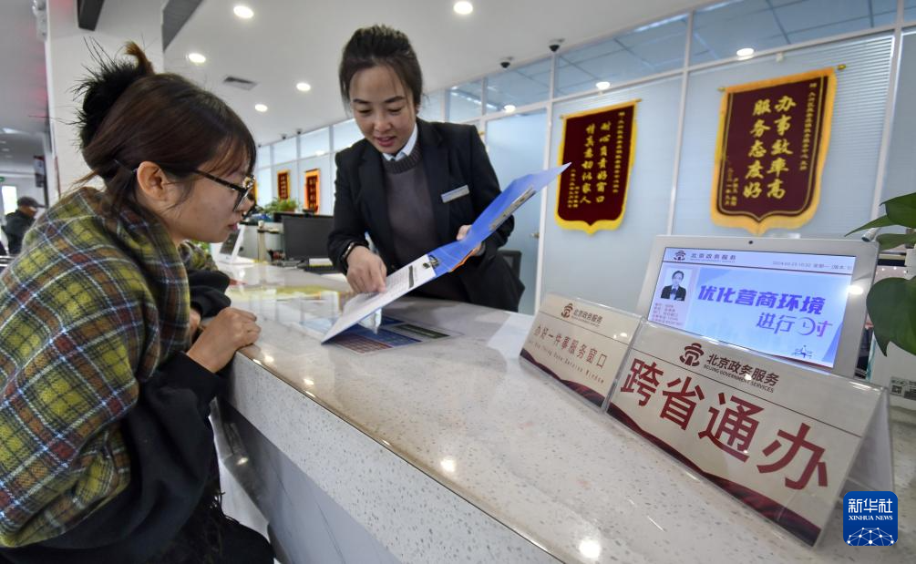 3月25日,庞各庄镇政务服务中心的工作人员在为群众办理跨省政务事宜。