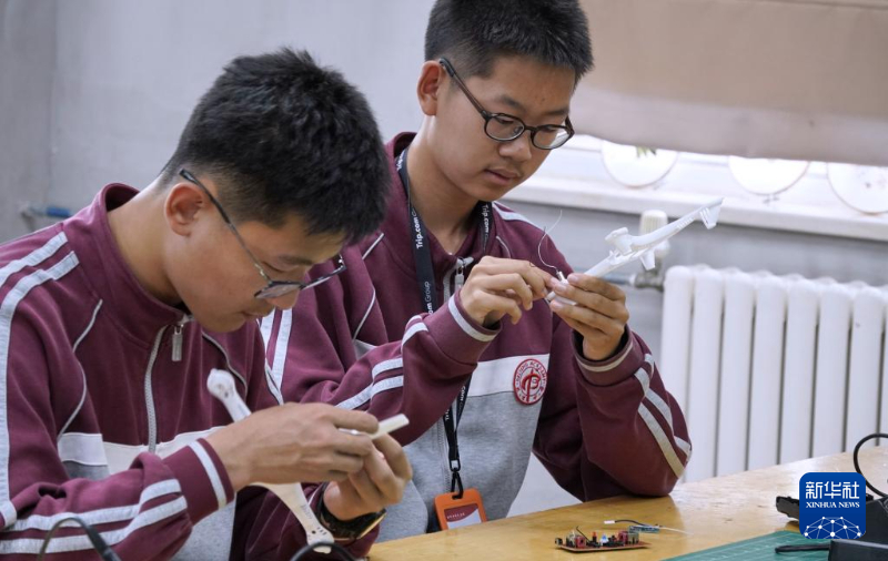 北京中学的学生在课余时间制作无人机(5月8日摄)。