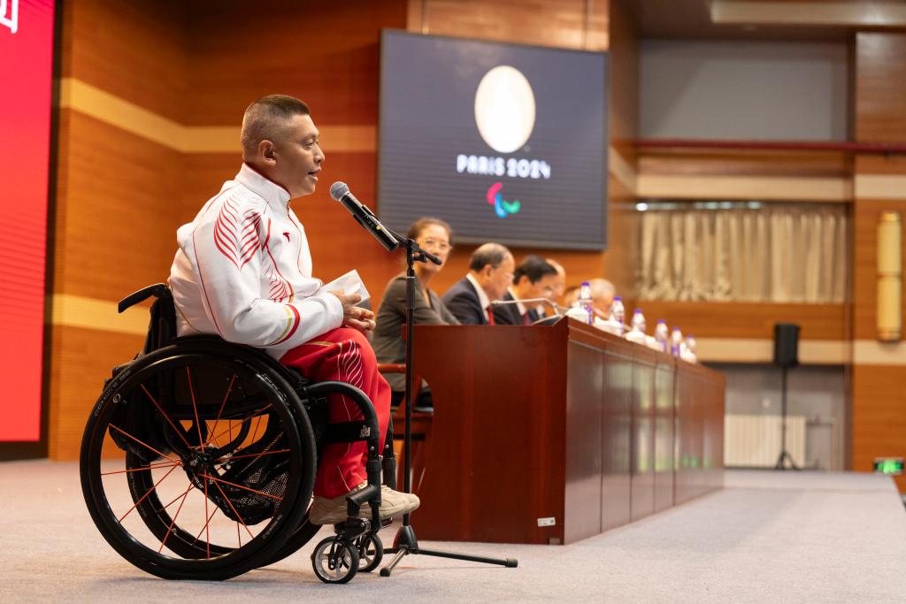 代表团团长、中国残联主席、中国残奥委员会主席程凯在讲话中强调,要以高昂的斗志、必胜的信念、过硬的纪律调整出最佳状态,全力以赴完成好各项参赛任务,在巴黎残奥会上再创辉煌。运动员要不骄不躁,再接再厉,突破自我,超越局限,展示中国军团的“神勇”,再创新的辉煌;要坚持拿道德的金牌、风格的金牌、干净的金牌,展现礼仪之邦的文明风范和中国残疾人自强不息、乐观向上的精神风貌;要主动交流,广交朋友,增进友谊,展现新时代大国良好形象,讲好中国残疾人故事,展示中国式人权保障和国家发展成就。