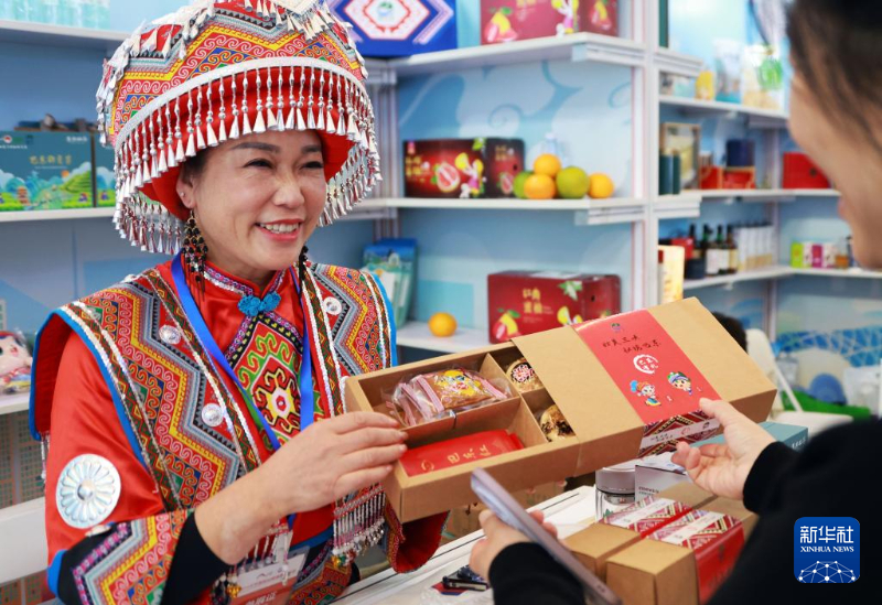 11月1日,一名参展商向观众介绍特产。