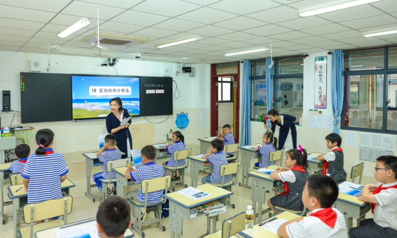 活动中,黄城根小学附属实验分校的师生代表与三沙市永兴小学的同学们同上一节课,进行了深入交流和互动,分享彼此的学习与生活。两校还正式宣布建立友好学校联系,今后在师生交流、校际互访、教育资源共享等领域开展合作,以学校“手拉手”的形式带动北京与三沙的孩子们“心连心”。