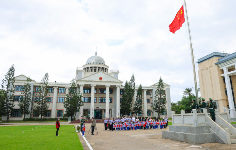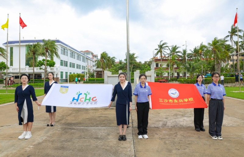据了解,今年以来该校已经与驻守祖国西大门、海拔5380米的喀喇昆仑钢铁哨卡神仙湾边防连的官兵们,与驻守在祖国东大门东方第一哨的戍边战士们同升一面国旗。黄城根小学教育集团校长麦峰表示,这次将国旗带到祖国的最南端,通过这种仪式化的活动,可以让孩子们感受到戍边英雄们坚守祖国边疆的伟大与艰辛,也进一步增加孩子们的爱国热情。