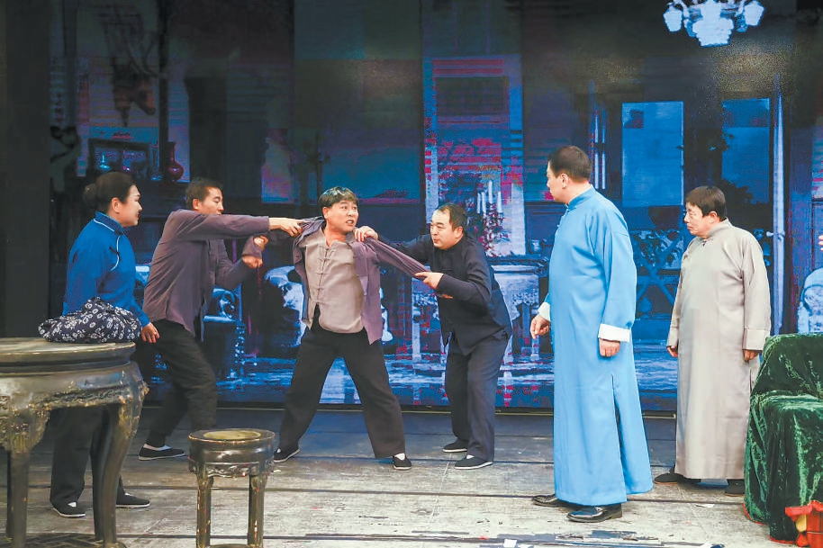 面点师傅汤玉新(右三)作为演员登上北京人艺的舞台。本报记者方非摄