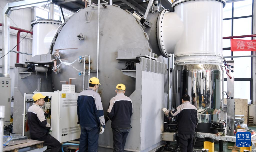 2月8日,在位于北京市大兴区亦庄镇的高科技企业中航天地激光科技有限公司,工人在安装新设备。
