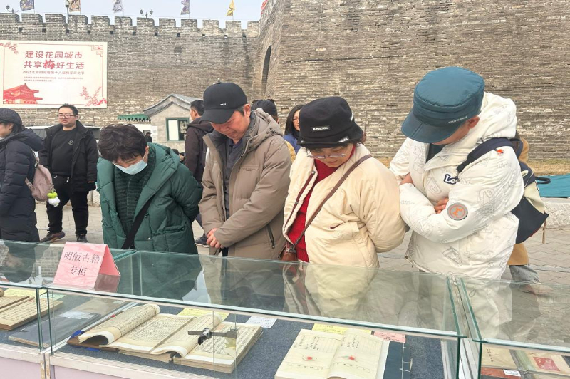 3月1日,北京明城墙遗址公园内红梅初绽,在这里举办的东城区“旧书新知展春颜”活动也吸引了大量市民游客。家住附近的北京市民杜鑫特意带着女儿前来体验,“梅花的香气仿佛与书页的沉香交织在一起,这种沉浸式的学习比课堂更直观,也更鲜活。”她说。