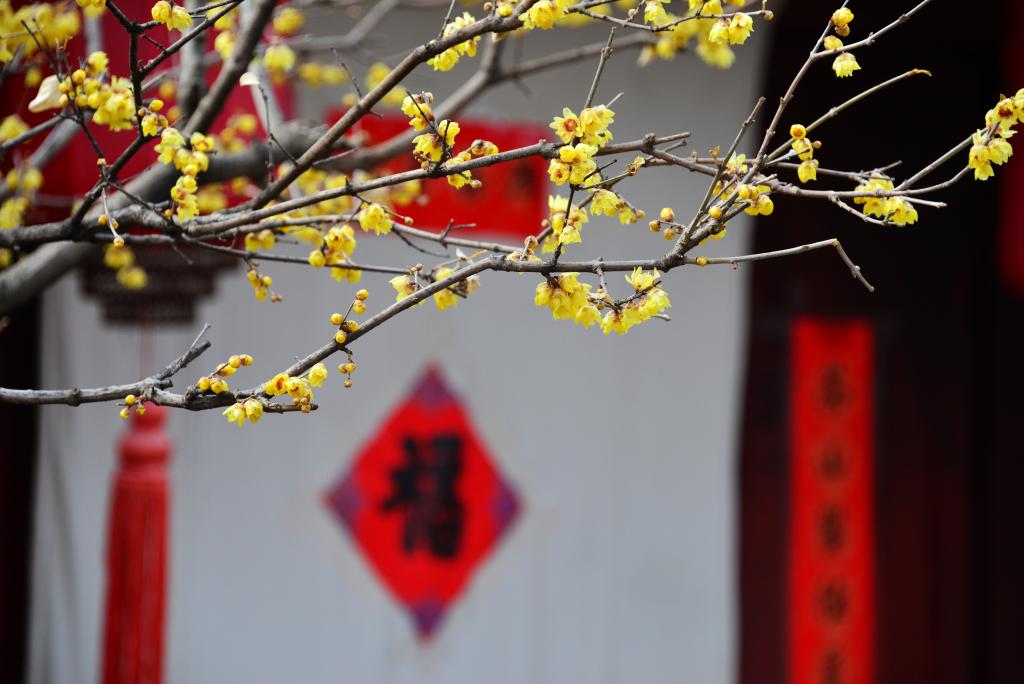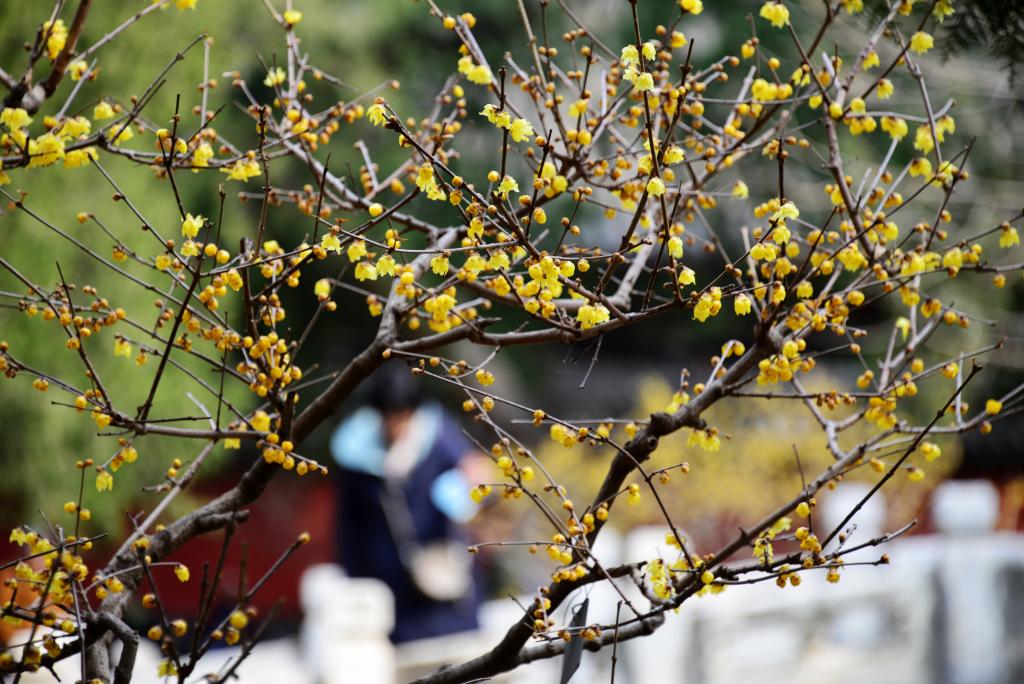 立春以来,北京国家植物园卧佛寺内的蜡梅渐次绽放,一簇簇鹅黄色的花朵缀满枝头,与古建筑相互映衬,春日气息扑面而来。