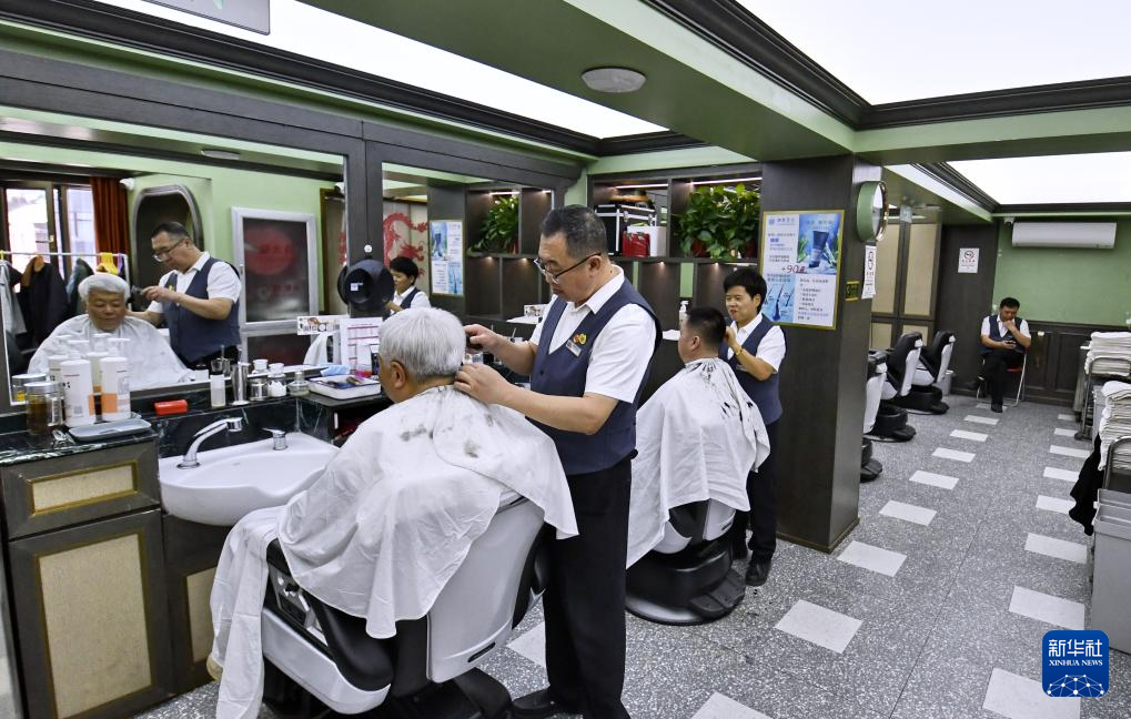 3月20日,四联美发王府井店的技师在为男顾客用传统的“拱三茬”技艺理发。