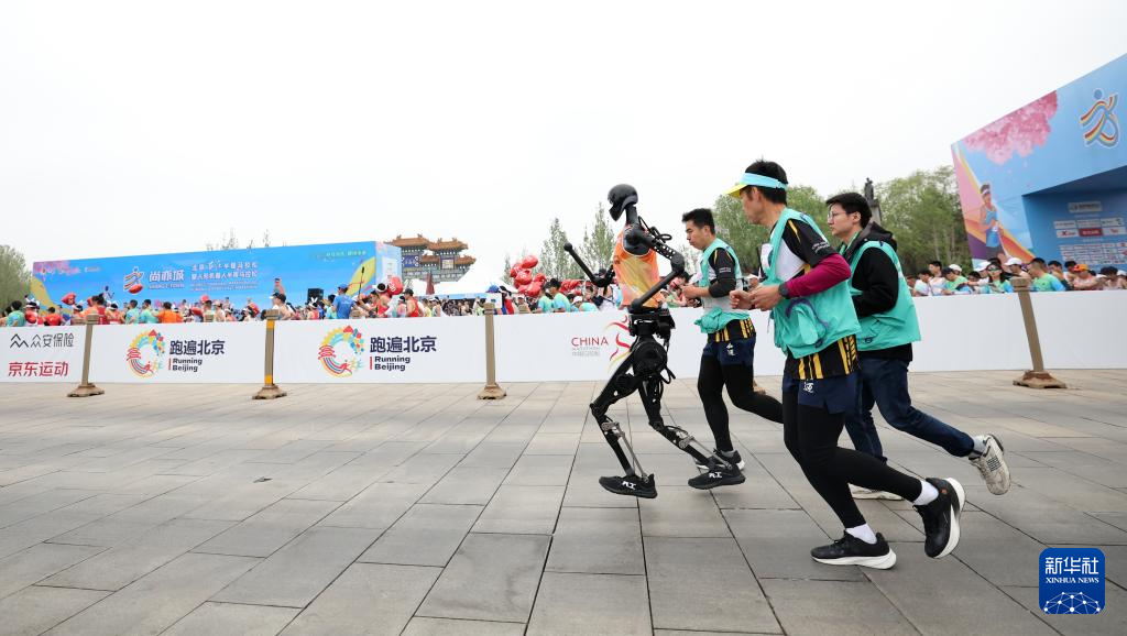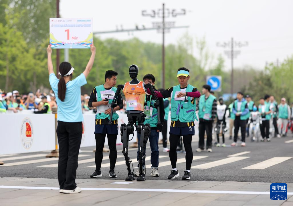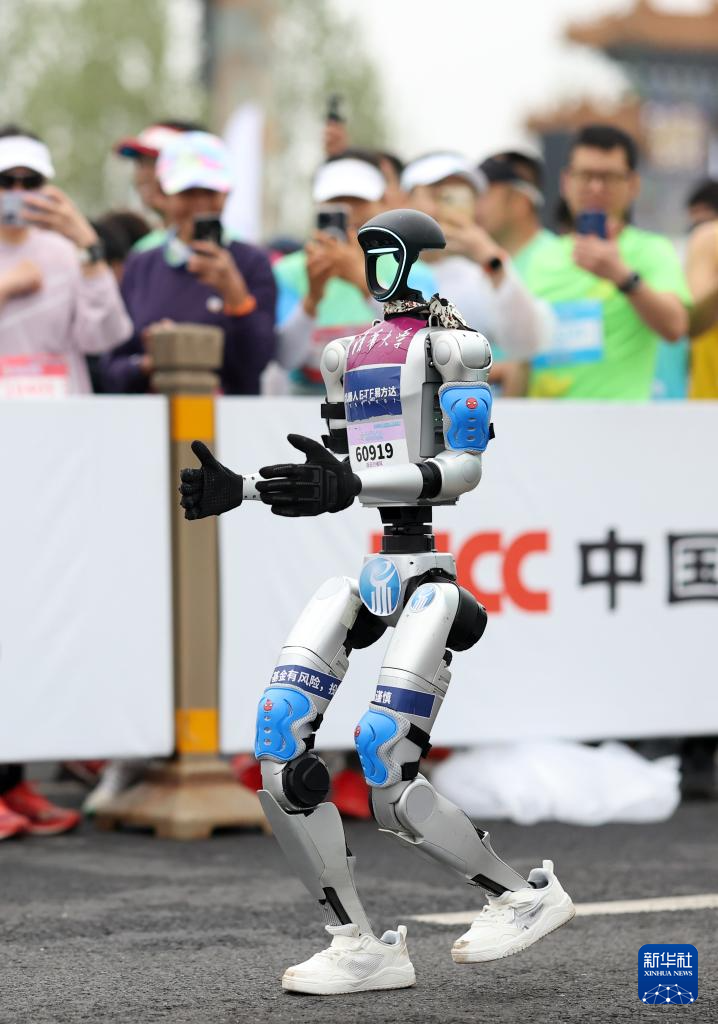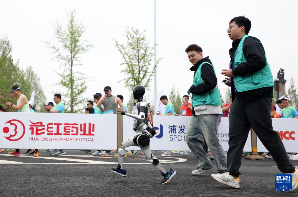 4月19日,天工队选手天工Ultra(中)从起点出发。