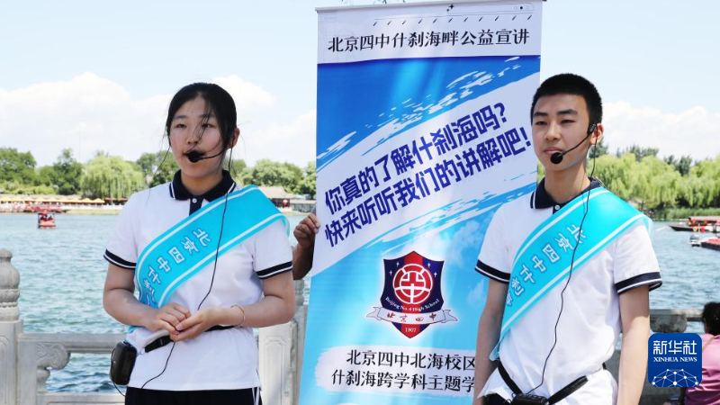 当日,北京四中(北海校区)和西城区什刹海街道联合举办主题教育活动。学生讲解员们在荷花市场、银锭桥及万宁桥等地点,向游客宣讲什刹海历史文化知识,并通过现场水质检测介绍什刹海及周边水域环境保护情况。