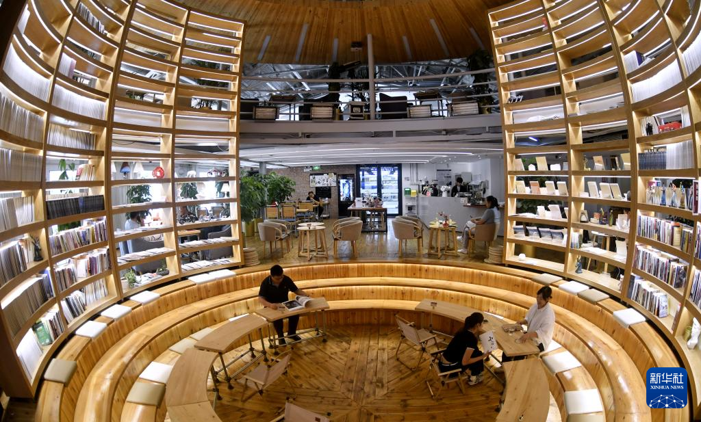 纪家庙双创产业园内为青年人提供的集读书、简餐、会谈为一体的拓普原素咖啡馆(9月19日摄)。
