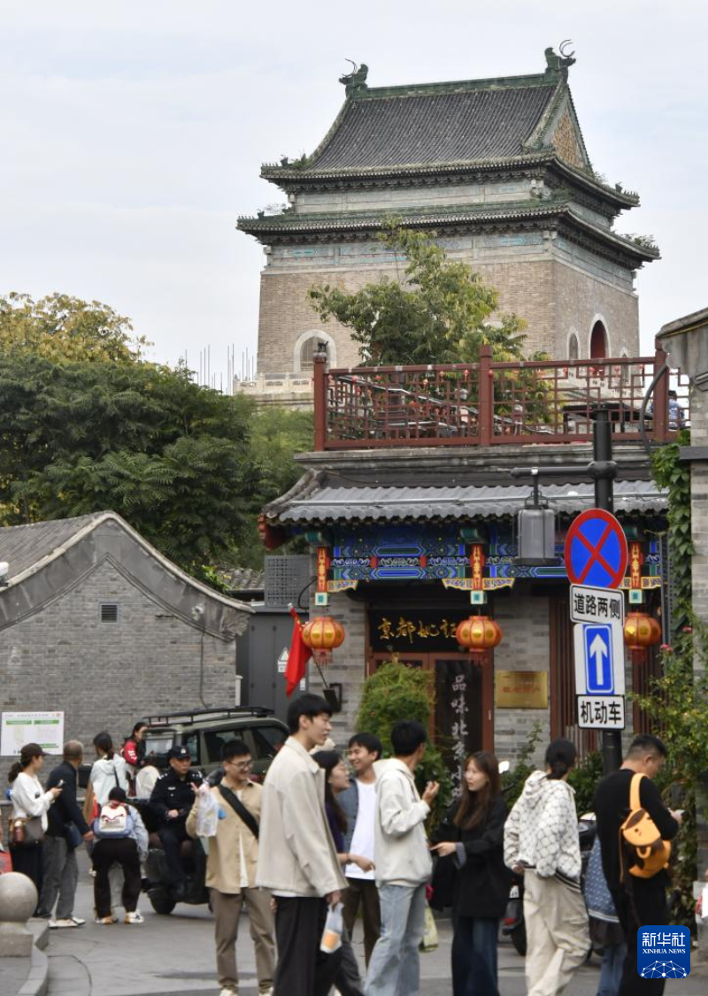 10月6日,游客游览北京钟鼓楼附近的小街巷。