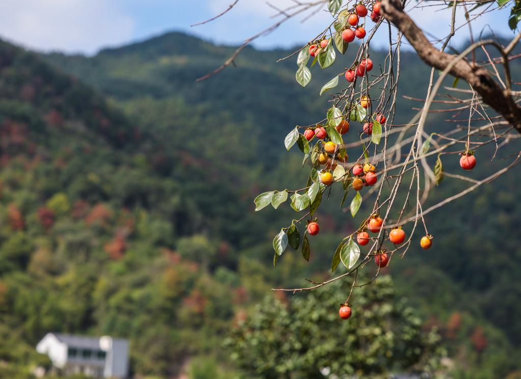 近日在赵家镇上京村拍摄的柿子树。金秋时节,浙江省诸暨市赵家镇上京村2000多棵柿子树迎来丰收季,山岭间的柿子树上挂满了红彤彤的果实,将山村装点得如诗如画。新华社记者 徐昱 摄