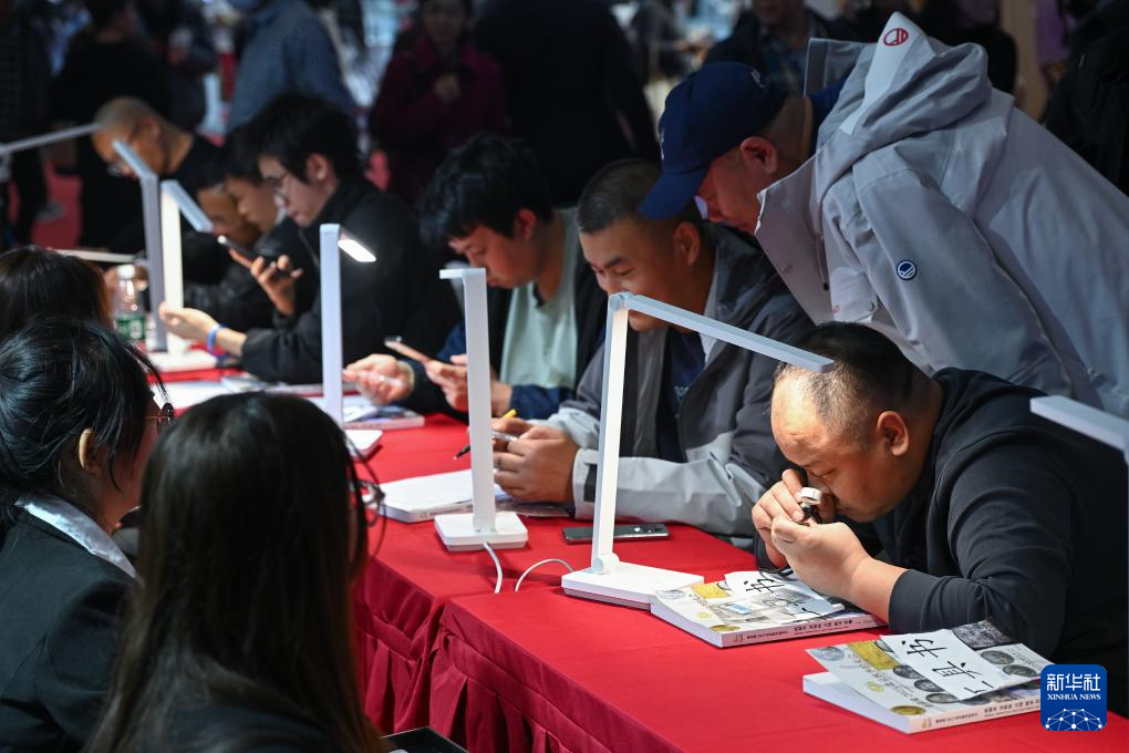 10月31日,参观者在钱博会专场拍卖会预展区了解拍品。