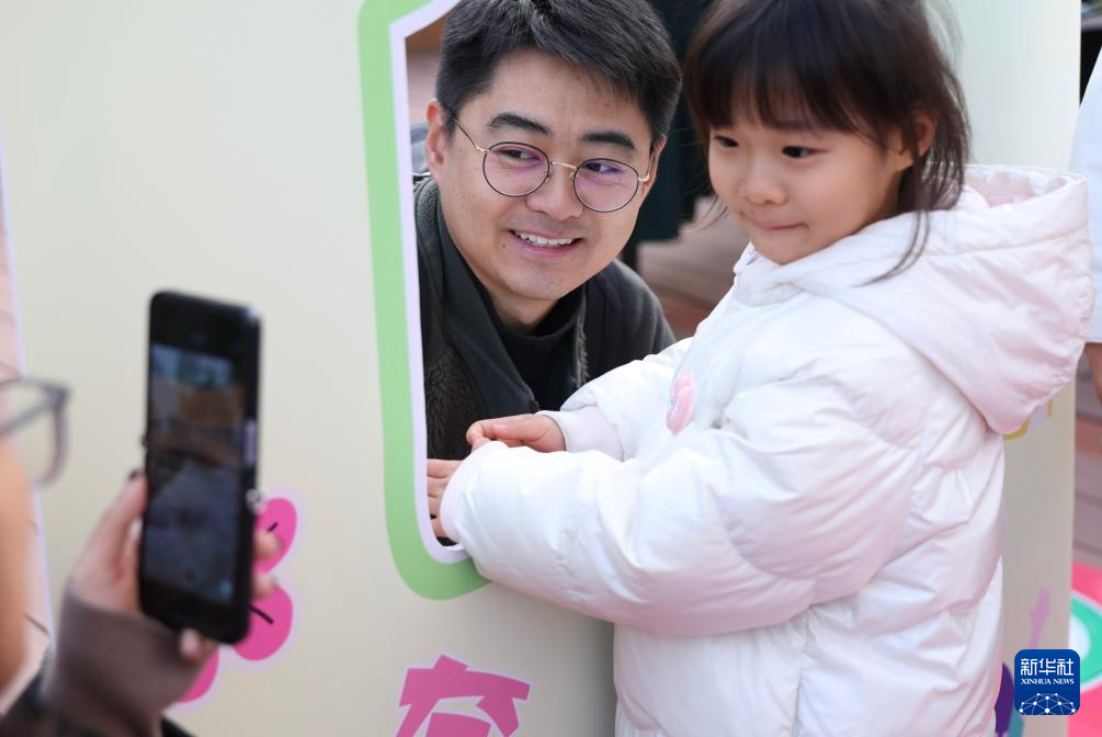 11月8日,一对父女在活动上参加“夸夸大会”亲子游戏。