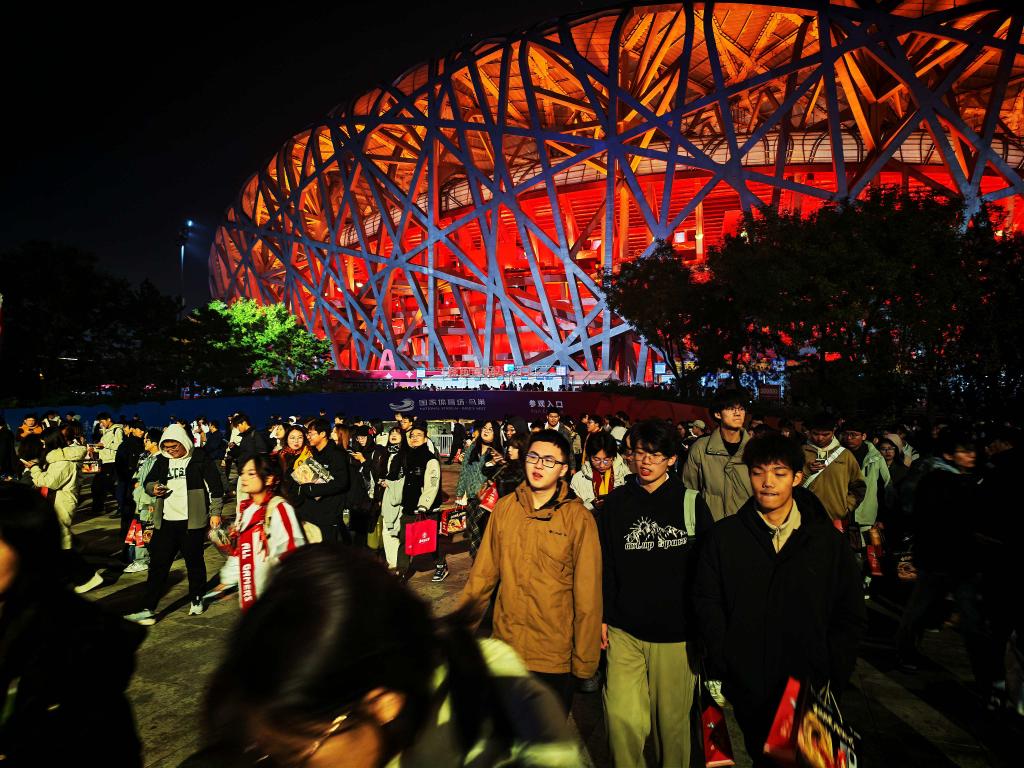 11月8日晚,赛事结束后观众离开“鸟巢”。新华社记者 鲍赫 摄