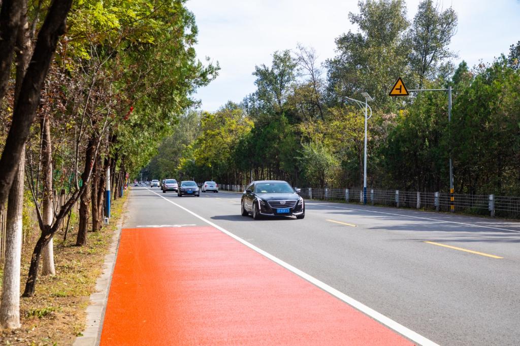 北京市交通委怀柔公路分局有关负责人介绍,怀黄路沿线有70%的森林覆盖率、93%的林木绿化率。公路管理单位坚持生态保护理念,对其开展精细管护。一方面及时修复破损路面,整治山体滑坡隐患,补植数万株苗木,保障“行得安”;另一方面,创设骑行道和休闲驿站,在满足机动车“快行需求”的同时,也为群众打卡赏景增添了“慢行韵味”。