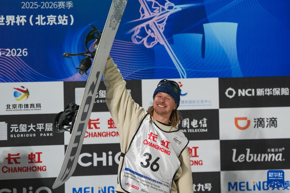当日,2025-2026赛季国际雪联单板及自由式滑雪大跳台世界杯北京站单板滑雪大跳台男子组决赛在首钢滑雪大跳台举行。