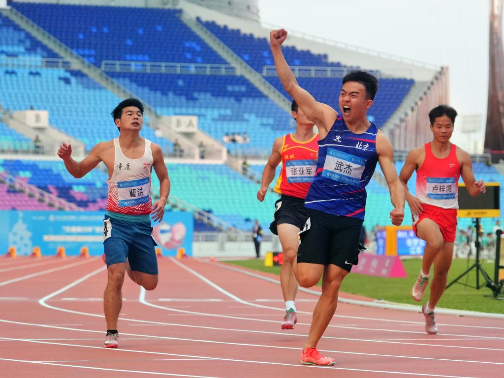 10日,在全国残特奥会田径赛场上,北京选手武杰以21秒91的成绩夺得男子200米听障项目冠军。(北京市残联供图)