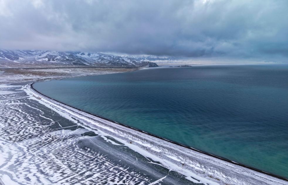 近日拍摄的赛里木湖和雪山(无人机照片)。新华社发(徐锐 摄)