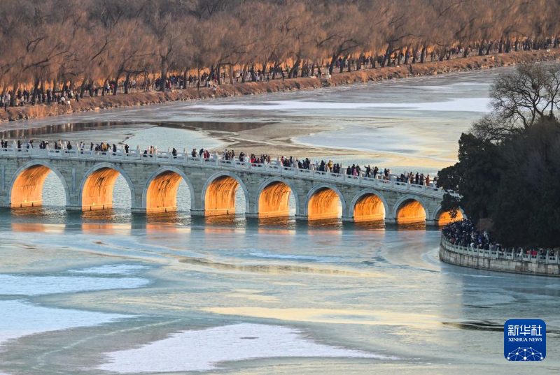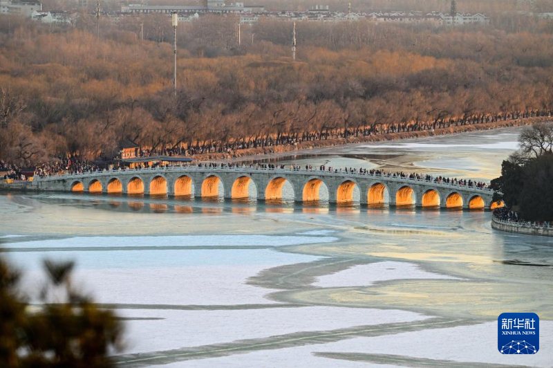 颐和园十七孔桥现“金光穿洞”美景-新华网