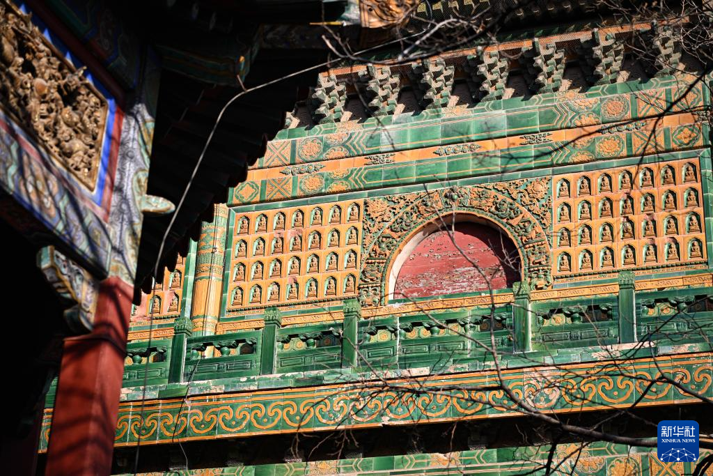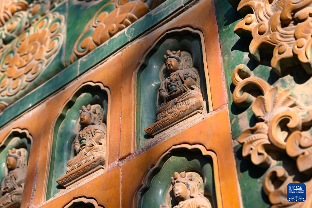 这是1月22日拍摄的三覆檐歇山琉璃阁外立面上的无量寿佛琉璃像。