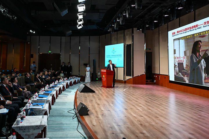 2024年9月20日,北京通用人工智能研究院院长朱松纯在“文化潮流:新兴业态与技术融合”平行论坛上演讲。新华社记者 张铖 摄