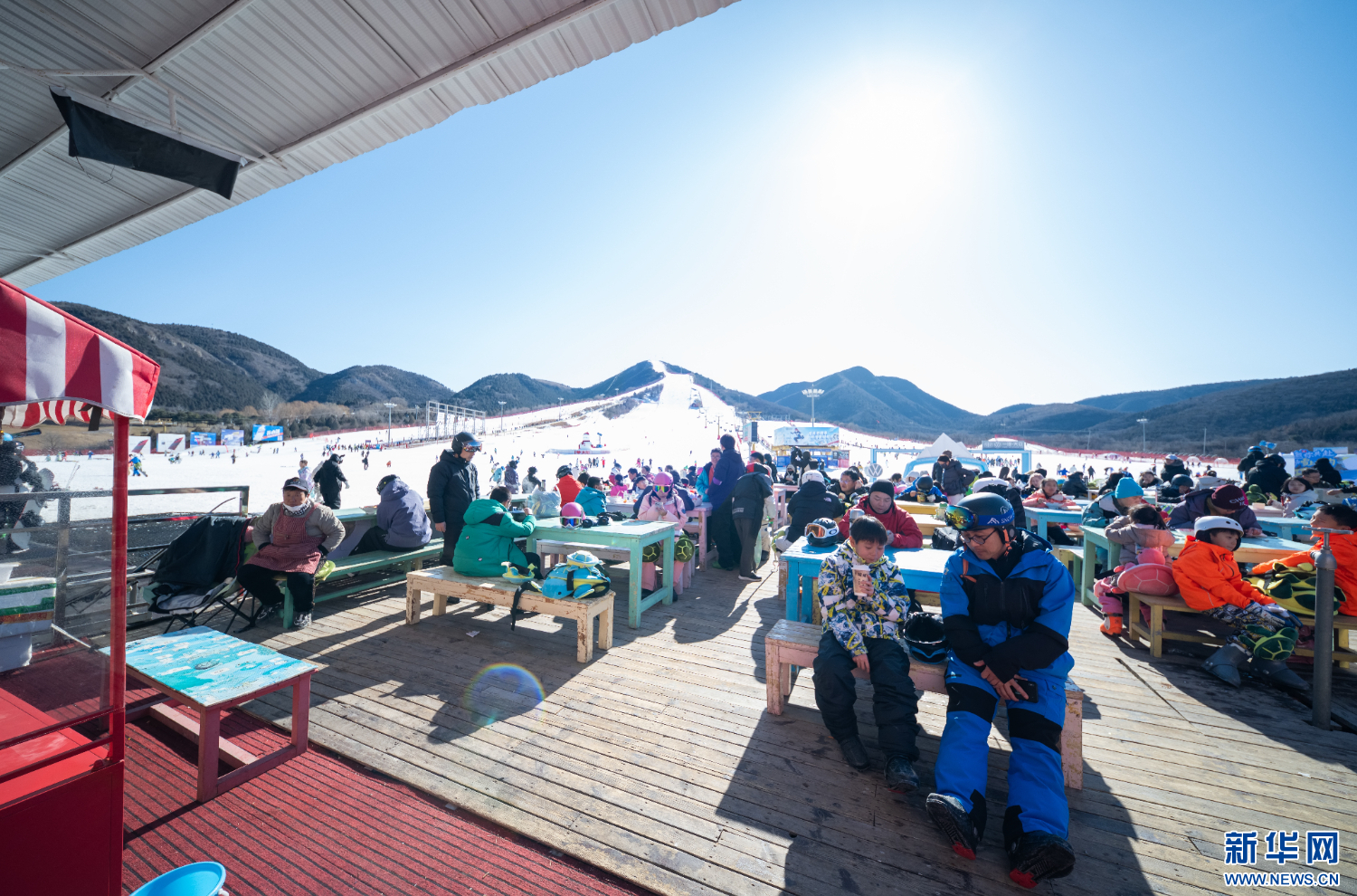 图为北京渔阳国际滑雪场里的户外餐饮摊位。新华网 毕尚宏 摄