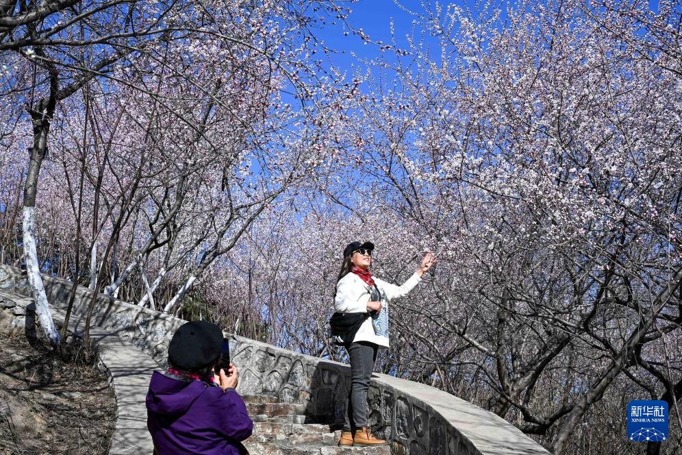 近日,北京园博园桃花谷山桃花次第绽放,吸引游客前来赏花踏青。
