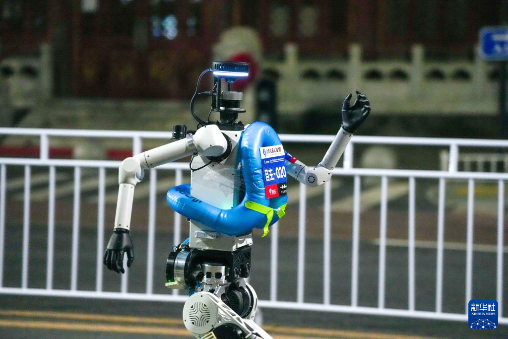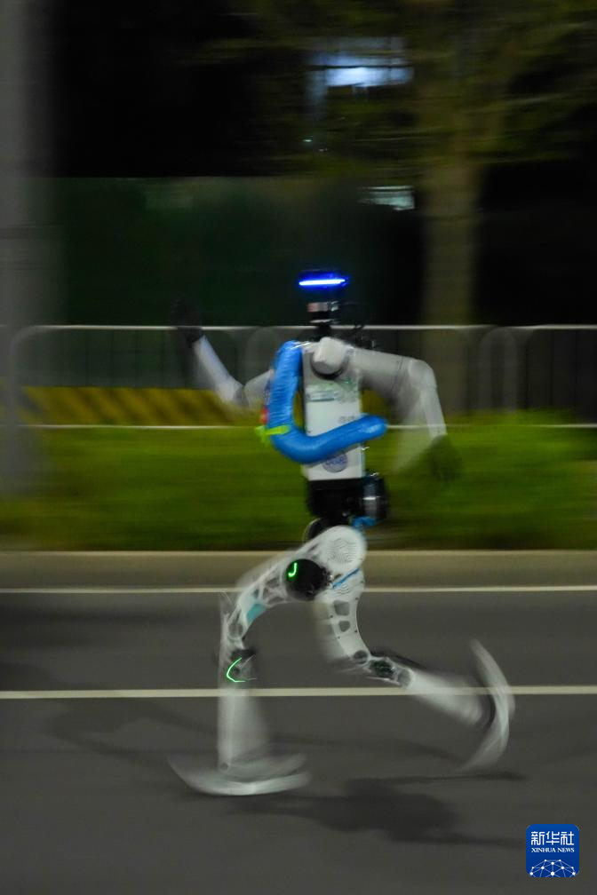 4月11日晚,一台机器人在测试活动中奔跑。 新华社记者 鞠焕宗 摄