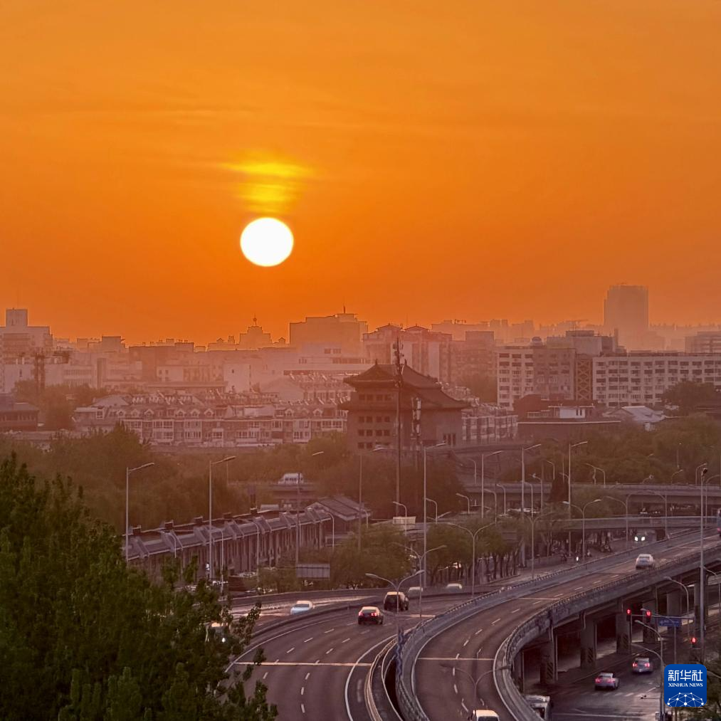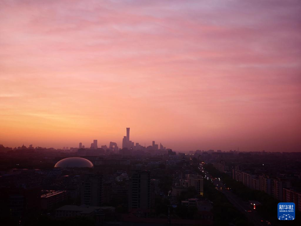 4月21日在北京德胜门附近拍摄的朝霞。