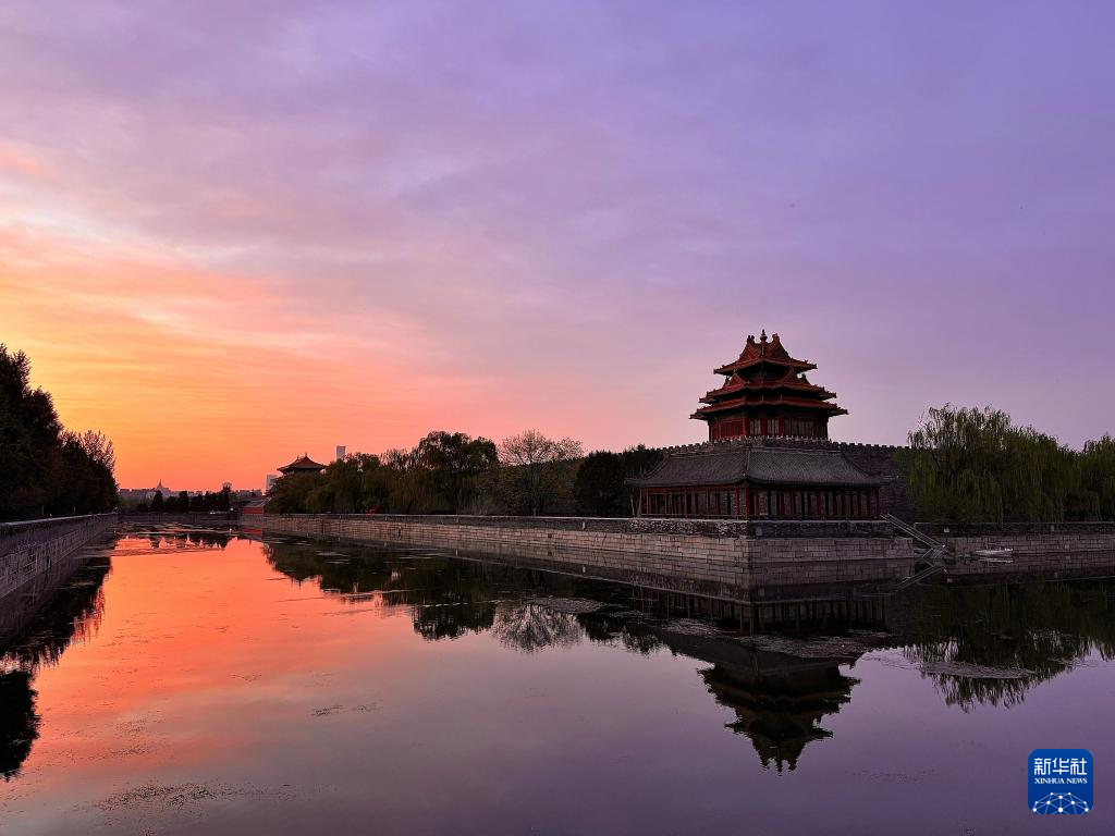 4月21日在北京故宫附近拍摄的朝霞。