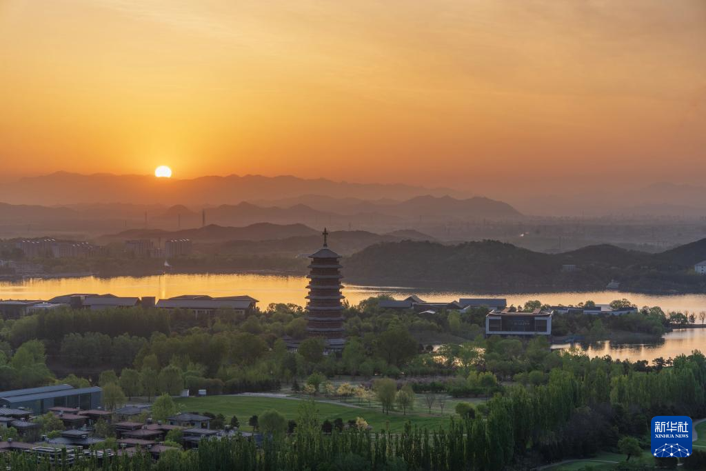 4月21日在北京怀柔雁栖湖附近拍摄的朝霞。
