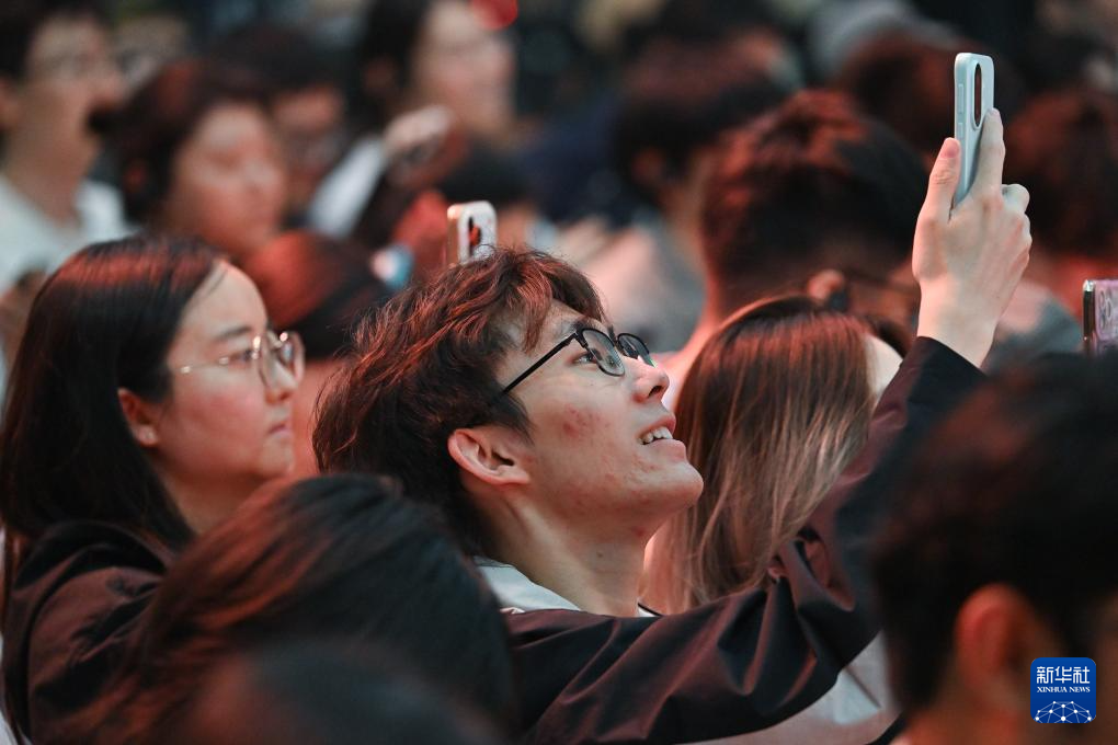 4月24日,影迷在活动现场用手机记录朱丽叶·比诺什的分享。