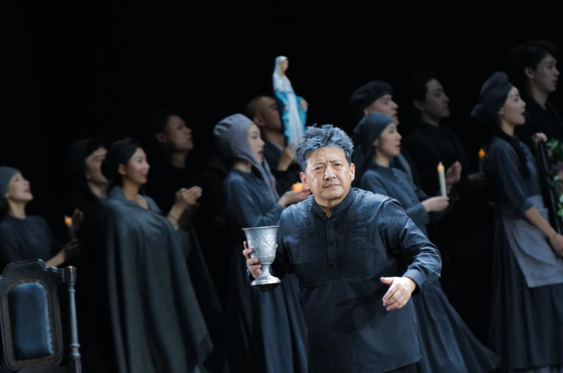 据介绍,《浮士德》中,舞台中央一座重达五吨的黑色立方体,在剧中幻化为书架、囚笼等多重意象,结合或铿锵、或悲怆、或极具仪式感的音乐,旨在将观众从现实世界瞬间引入戏剧的奇幻时空。(记者白瀛)